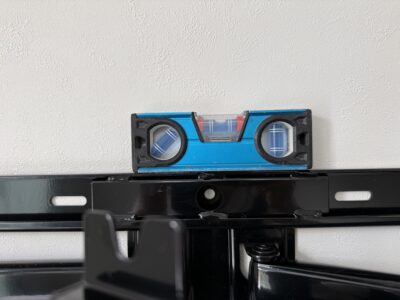 金具を水平に取り付けた後、テレビ本体を慎重に設置。
