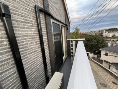 室外機をバルコニーに設置するにあたり、窓を塞いでしまうためお客様とご相談の上、窓上に配管を這わせたルートでの施工となりました✨